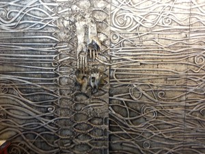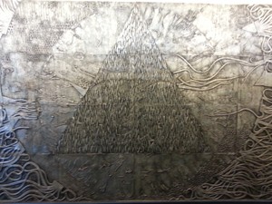 The various textures serve as a background and in the midst of lines, grooves, reliefs, the figurative elements stand out clearly projecting their meaning, subtly and yet unmistakably.
